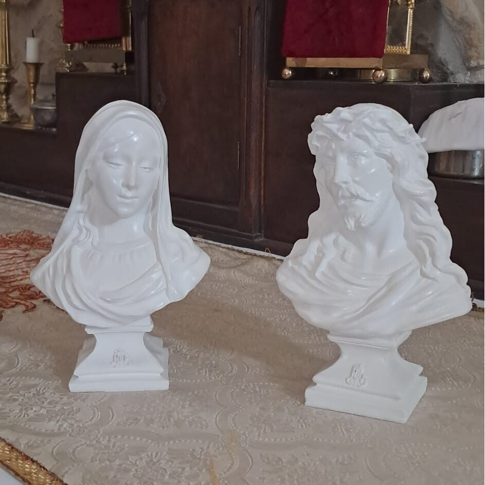 Ces magnifiques bustes de Jesus et Marie d'inspiration XIXe s'adaptent à tous les intérieurs et apportent de la douceur dans le foyer. Les scupltures de Jésus et Marie nous rappellent l'importance de la prière. Dans votre oratoire ces statues du Jésus Christ et de la Vierge Marie seront une bénédiction.