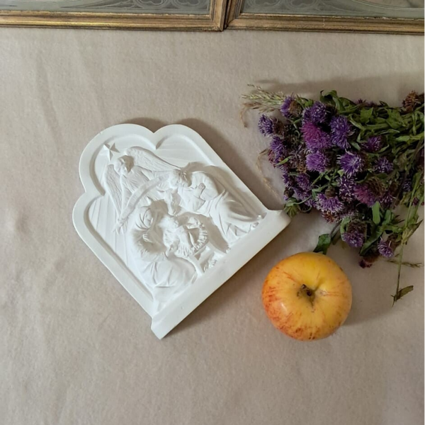 Cette crèche miniature représente la scène de la Nativité, avec Saint Joseph et la Vierge Marie en prière autour de l’Enfant Jésus. D’un blanc immaculé, elle s’intègre harmonieusement dans tous les espaces et apporte douceur et spiritualité à votre intérieur.