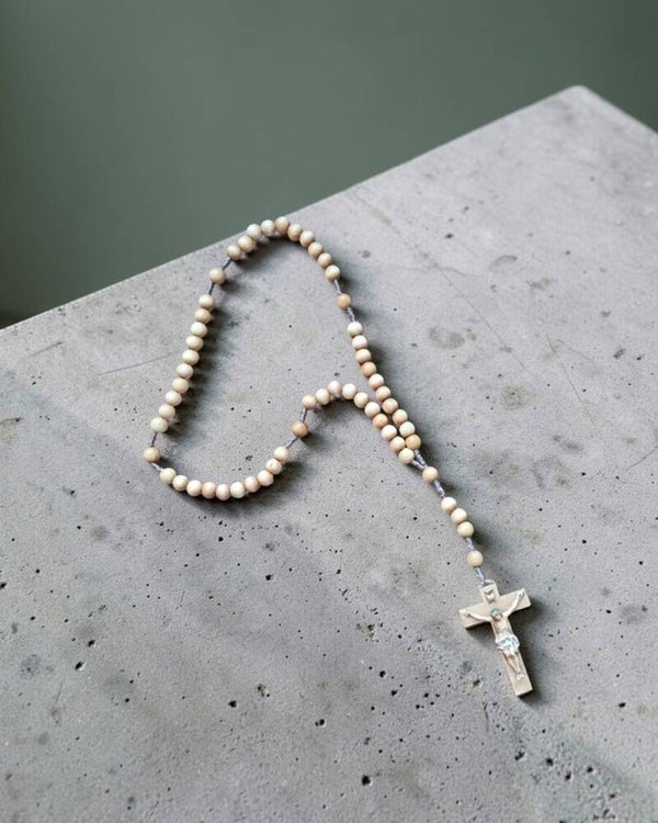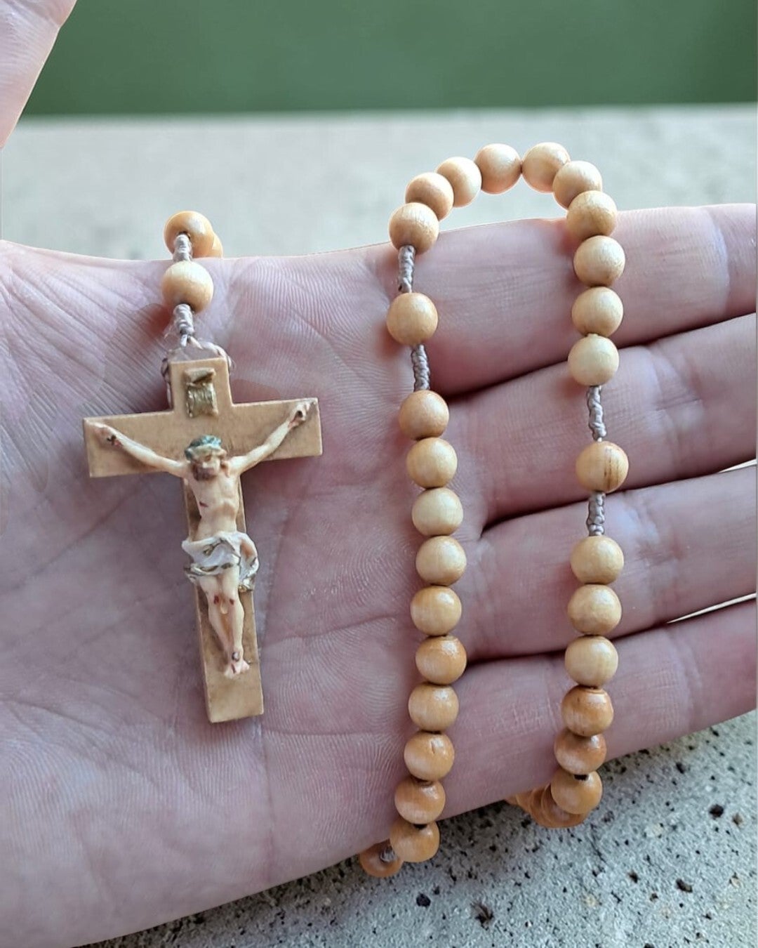 Découvrez ce chapelet artisanal en bois d’olivier, réalisé selon la tradition italienne avec un soin particulier apporté aux détails. Chaque pièce est travaillée à la main, offrant un objet de prière à la fois authentique et profondément expressif.